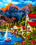 Картина по номерам «Парусная лодка у прибрежной деревни» 40x50 см